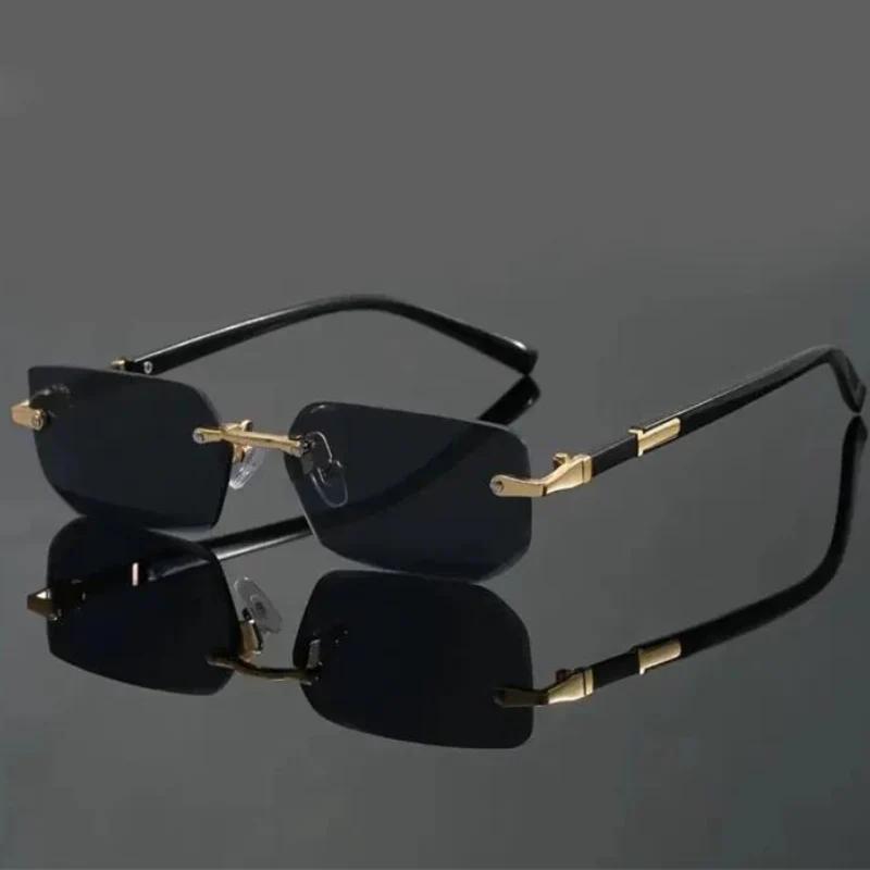 Black Rectangular Frames with Golden-Tone Metal Glasses